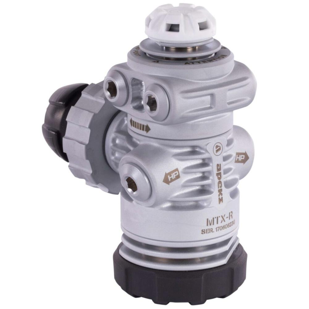 The MTX-R's exceptional cold-water performance reduces the risk of free flow, thanks to its several innovative components. This includes a novel end cap and environmental diaphragm, a forged first-stage body for optimal thermal preference, a ribbed diaphragm clamp, and an enlarged heat exchanger on the second stage incorporating metal into the front cover design.