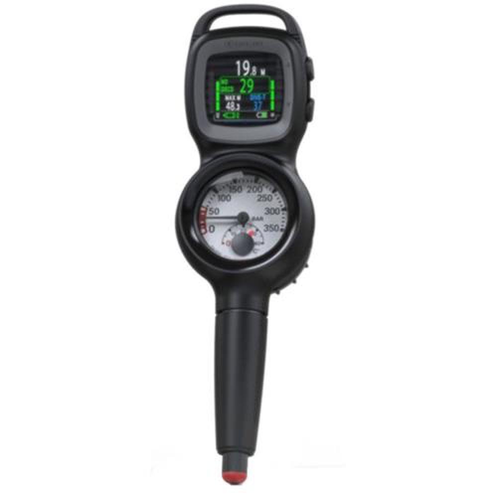 The Aqualung i330R Computer is housed in a console boot with a submersible pressure gauge. Designed with ease of use and simplicity in mind, the pressure gauge display has a luminescent gauge face for easy reading in low light. The Aqualung Pressure Gauge delivers both remaining air pressure and temperature in one easy-to-read display. Easy-to-read scale up to 5,000 psi rated. Integrated temperature scale, Nitrox compatible up to 50%, Swiss-made, shock-resistant Bourdon tube, one-way safety valve and a hose length of 36" (91.44cm) with 7/16" threads.