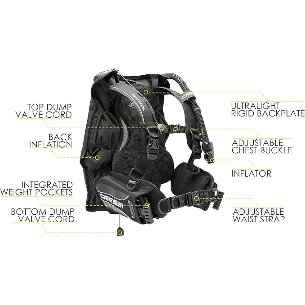 Cressi Travel Patrol Package- Complete with Patrol BCD, MC9/Compact Regulator, Octopus Compact, Donatello Console 2, and Piper Bag