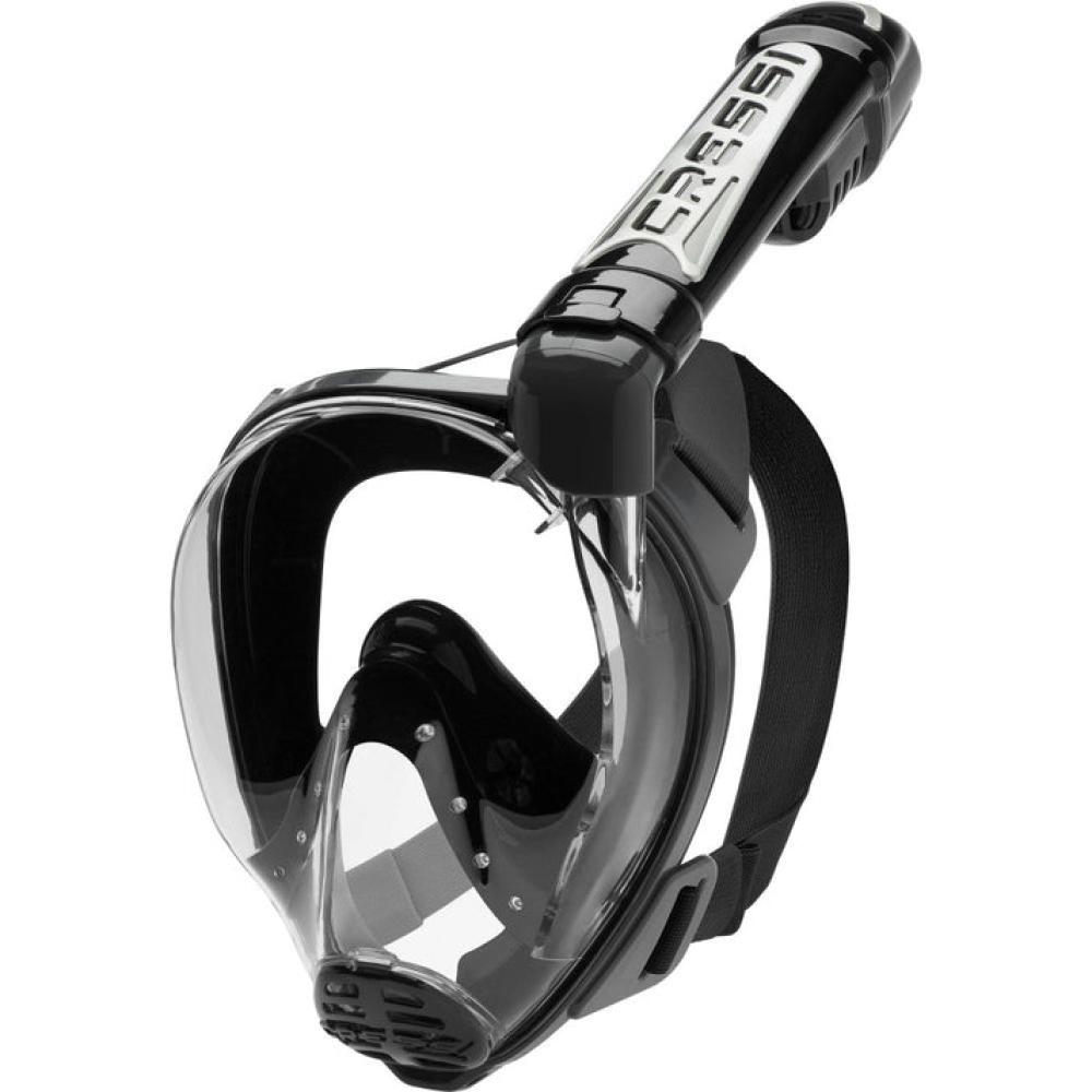 Cressi's new Duke full face mask is designed with safety in mind. With a 30% larger viewing area, snorkelers can see all the underwater world has to offer without feeling claustrophobic. The dry snorkel keeps water out, while a specialized deflector maximizes air circulation and eliminates fogging. The valve's design gives the user effortless and natural breathing, with a wide breathing area around the nose and mouth. Water draining valves remove any water that may enter the mask.