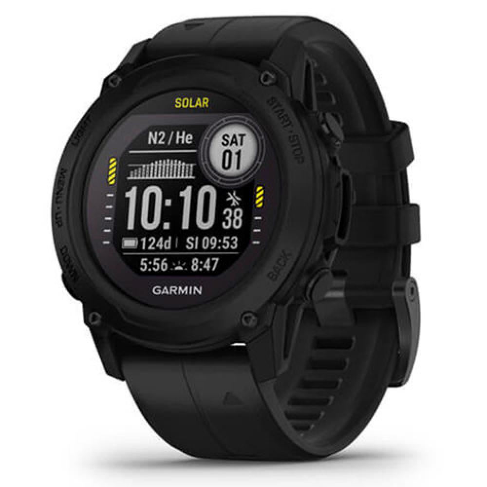 Land or sea, this compact dive computer is built for both your worlds. Support for multiple dive modes ranging from technical to free dives. GPS enabled to help mark surface entry & exit points. Store up to 200 dives. Upload, share & review dives in Garmin Dive app (1). Measure performance, & track stats above water. Track your activities w/more than 30 built-in sports apps & advanced training features. Explore longer w/up to 25 hours in dive mode, up to 124 days in smartwatch mode when solar charging (2) & up to 39 hours in GPS mode when solar charging (3). Engineered for Endurance: Rugged dive computer is water-rated to 330' (100m), features a sapphire lens and is rated to MIL-STD-810. Designed to be Daring: With a high-contrast display & purpose-built design, this device is meant to wow you.
