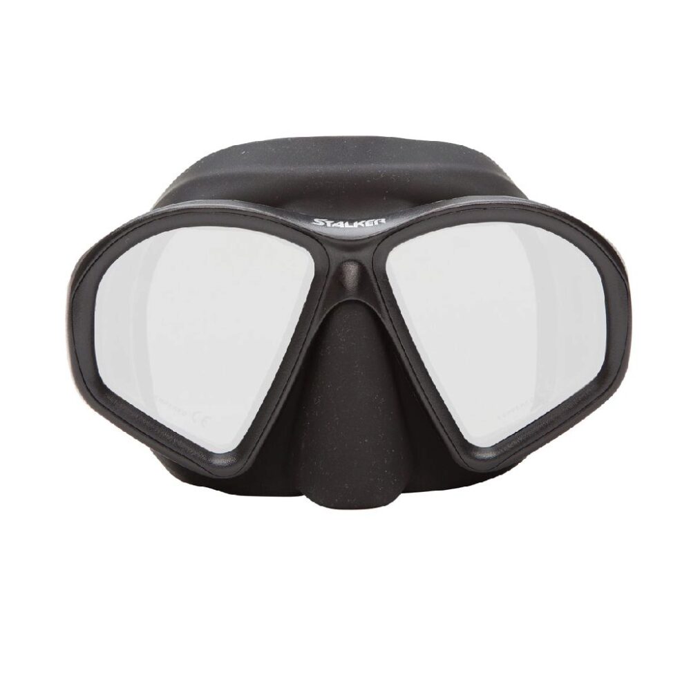 Did you ever wonder why all the good spear fishermen wear only dark rubber masks? Clear Silicone Rubber can Create Reflections on the Inside of the Lenses from Surface Light Distracting the Hunters Focus on the Prey. Real Underwater Hunters always wear Black. The XS Scuba Free Diver Stalker Mask is a favorite among free divers and spear fishermen. This two lens mask is available in stealthy all black or camo-green. The all black version of the mask includes a unique lens coating so that the fish cannot see the diver s eyes.