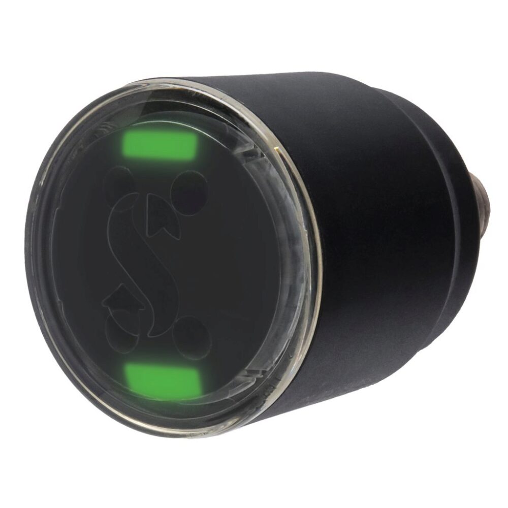 Enjoy the convenience of air integration without the hassle of a dangling hose. The low-profile transmitter screws into a high pressure port on your first stage and relays tank pressure and true remaining bottom time (RBT) to the computer screen. Featuring a more visible built-in LED on top of the cap, it provides an estimate of tank pressure when the first stage is attached to a tank letting you know if the tank has gas without needing to activate the computer.