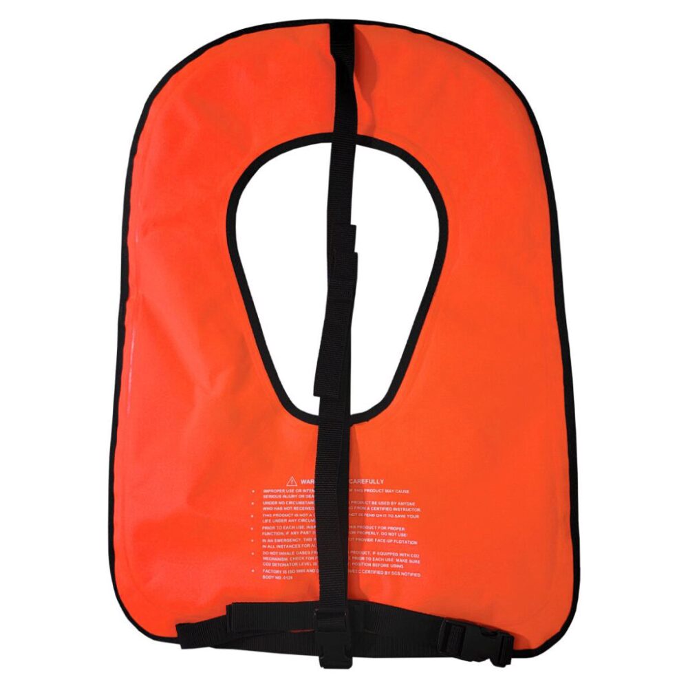 This snorkeling vest stands out in a radiant orange hue, making it easy for watercraft operators to spot you, ensuring your safety. More than just a safety precaution, the vest also amplifies comfort and ease, allowing you to enjoy the beauty of the coral reef effortlessly. You can adjust the volume of air in the vest orally, letting you customize buoyancy as per your needs. Use it partially inflated as a comfortable pillow under your chest or fully inflate it when you need to relax and float on the water's surface.